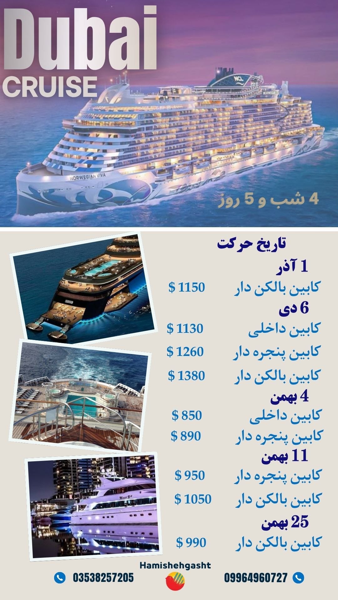 با تور کشتی کروز خلیج فارس فراموش نشدنی ترین سفر خود را رقم بزنید. برای کسب اطلاعات بیشتر و خرید تور با همیشه گشت تماس بگیرید!
